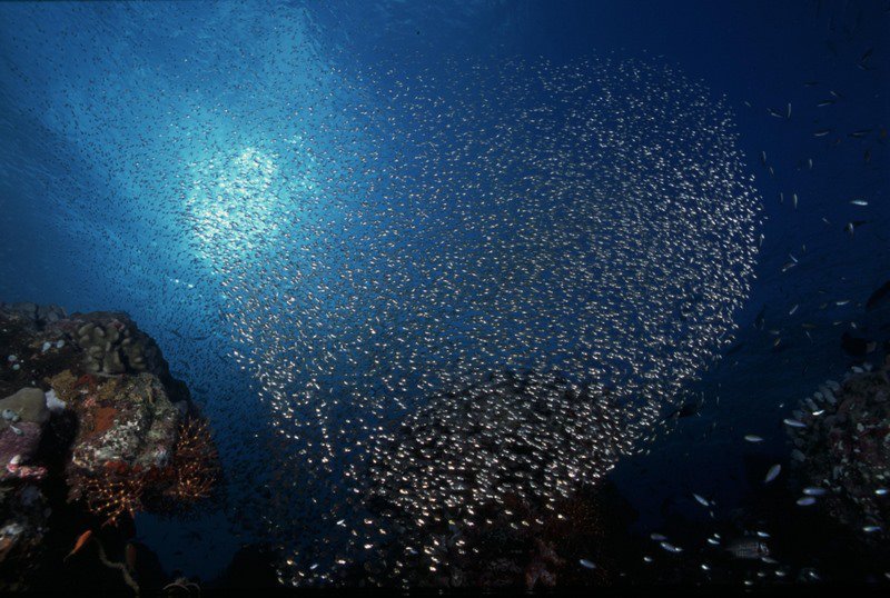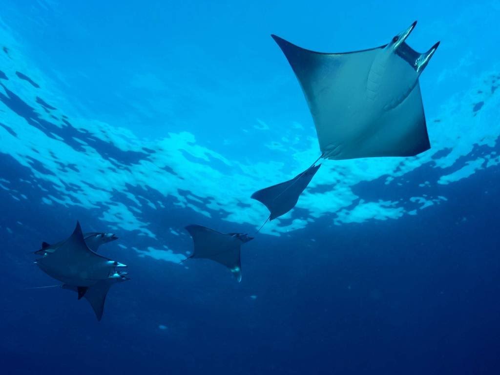 Provavelmente nenhum outro lugar tenha tanta vida marinha. Ao menos três quartos dos peixes de recife do mundo podem ser encontrados nestas águas, e o fundo marinho é indescritivelmente rico e belo. Aqui é comum o encontro com raias gigantes, tubarões, tubarões baleia, grandes peixes Napoleão, centenas de diferentes peixes tropicais, paredes de corais, corais moles, esponjas, e alguns bons naufrágios. Os mergulhos são em geral com uma correnteza de média para forte, e relativamente rasos a maioria acontecem a poucos minutos, ou as vezes metros, de 3 resorts de mergulho (dive resorts) nas maldivas os quais indicamos.