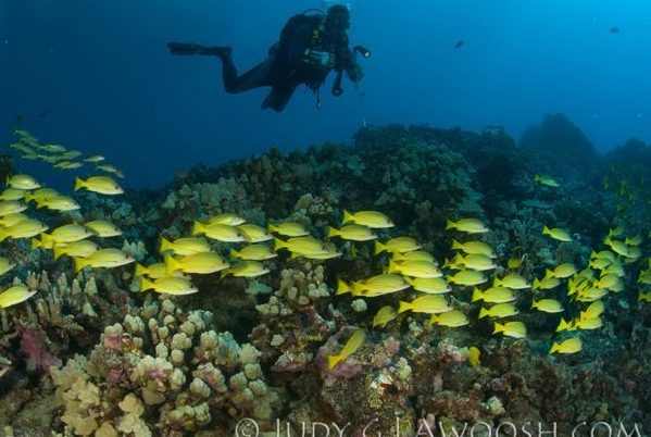 Muitas baías, lagoas, tubos e cavernas formadas pelas lavas, praias de areia negra e branca, perfazem uma topografia bem dramática, e super diferente para o mergulho. As espécies de peixes no Pacífico também são bem diferentes das encontradas no Caribe, inclusive acredita-se que 30% da vida marinha do Hawaii seja endêmicas e não encontrada em nenhum outro lugar. Aqui também é comum encontrarmos golfinhos, tartarugas, mantas, tubarões, barracudas, peixes-escorpião diversas espécies de baleias, principalmente no inverno deles, que é no final do ano. E aliando a tudo isso a possibilidade de se fazer mergulhos do básico ao avançado, com saídas de praia ou de barco, tornam o Hawaii um dos destinos mais visitados no Pacífico. ​