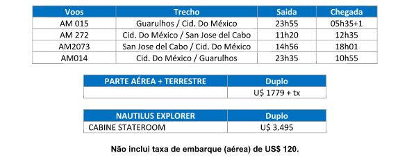 Apresentação no aeroporto de Guarulhos para embarque com destino a San Jose del Cabo, via Cidade do México.